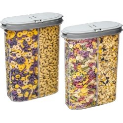 Deli Kitchen 5L Set of 2Pcs, BPA free Cereal Storage Containers 2-in-1 Box, Plastic Food Storage Container with Airtight lids, Durable, Stackable Kitchen Dispenser for Cereals. (5 Litre (2x)) £13.99