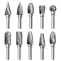 Tungsten Carbide Rotary Burr Set for Dremel, 10PCS Carbide Double Cut Carving Burr Bits with 1/8” Shank Rotary Tool Accessories for Woodworking, Engraving, Drilling, Steel Metal Working £13.98