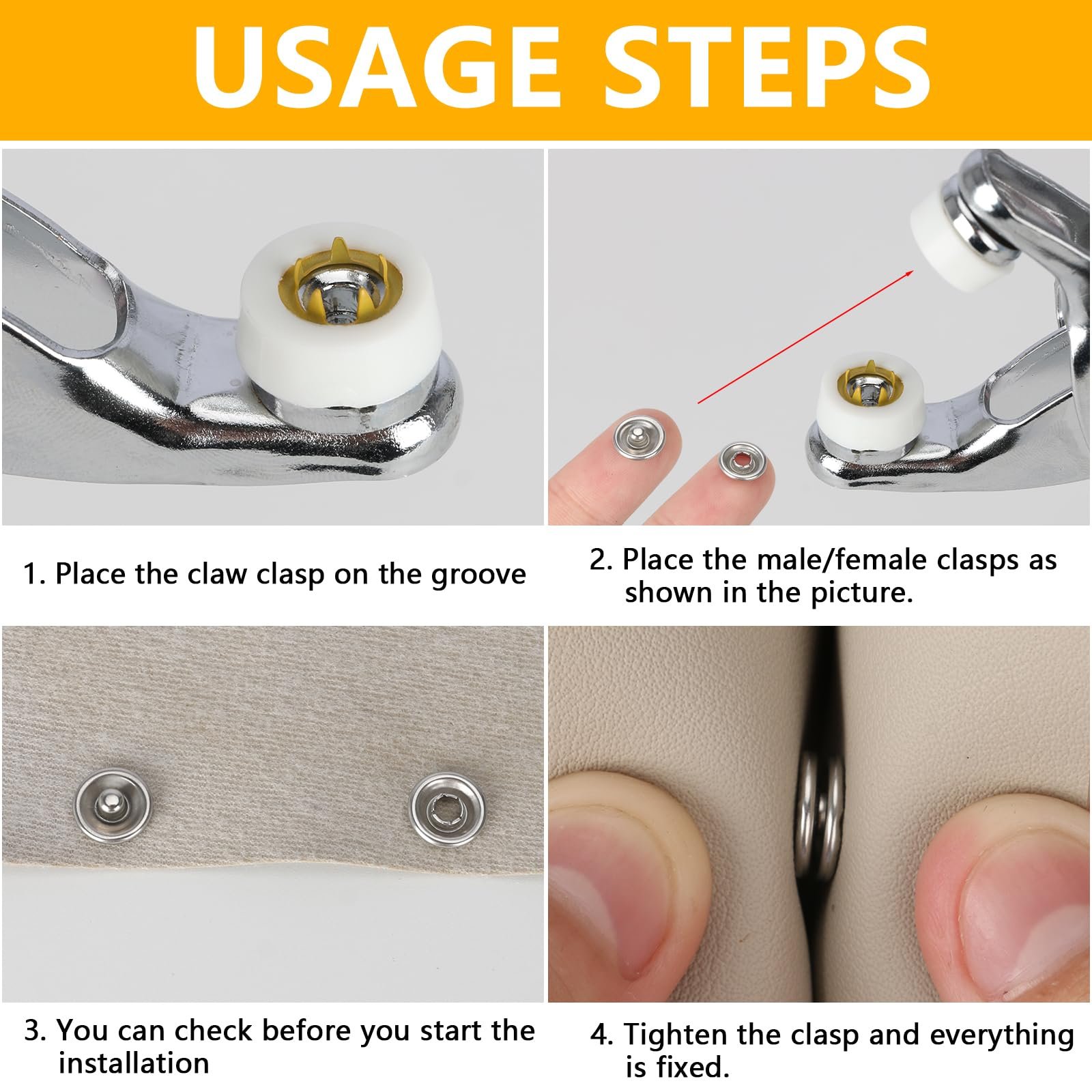 - 【Product Package】You will receive 100 pairs of Metal Press Studs Without Sewing, 1 storage box with 10 compartments and 1 pair of metal pliers. With this Snap Button Fastener kit, you can easily complete your buckle installation work with increased efficiency.