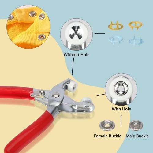 - 【Easy to Use】Hollow and Solid Metal Prong Snaps Buttons is perfect for crafting and sewing, and can be installed using the pliers included in the package. To install Press Stud Set with Plier, simply insert the button into the tool tongs and press the handle to pierce the fabric.
