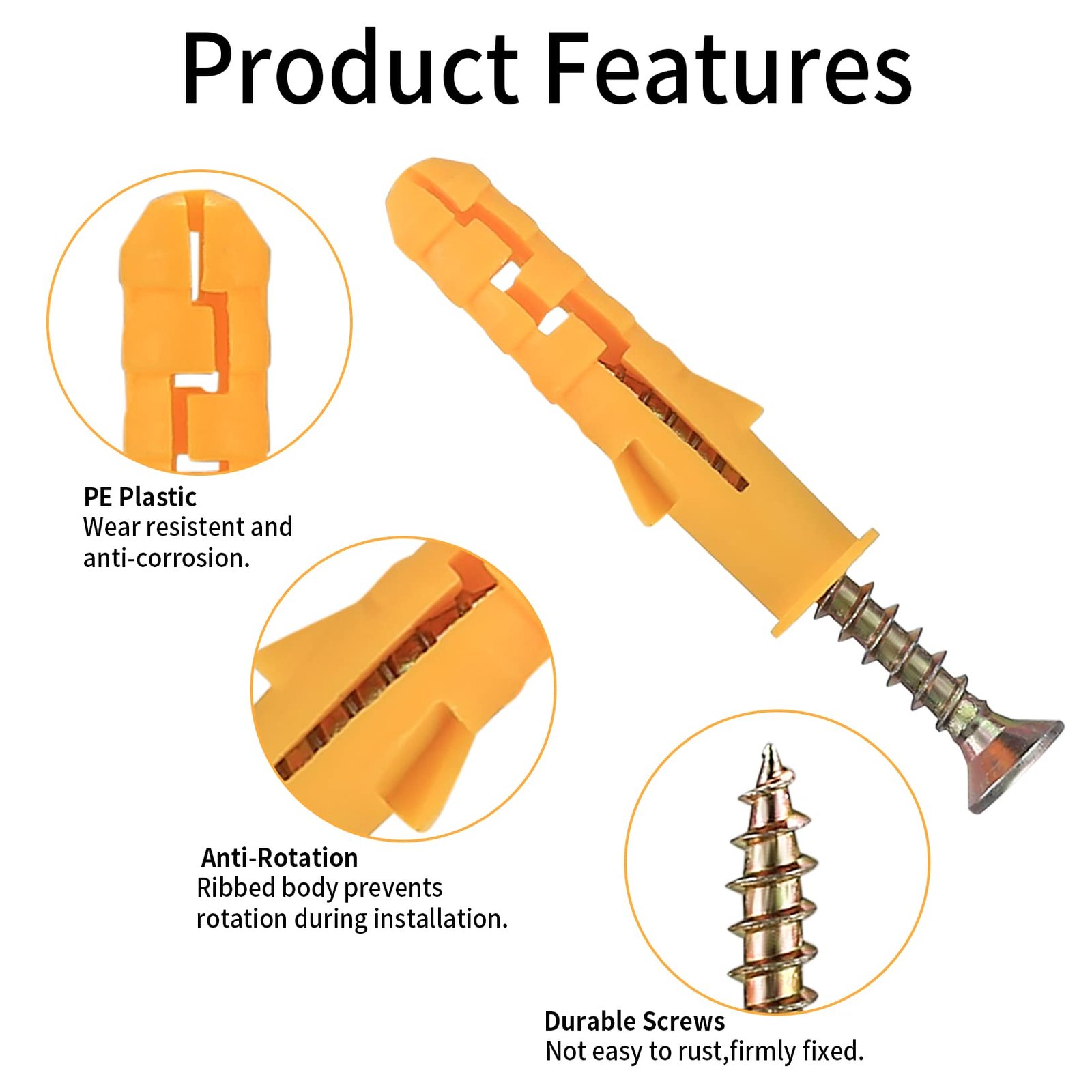 - Premium Material: The expansion wall plug is made of high-quality PP material with good flexibility, whiich is not easy to break. The self-tapping screws are made of high-strength carbon steel, which is corrosion resistance, and oxidation resistance, durable for long time use.