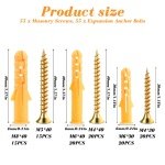 110 Pcs Screws and Wall Plugs Set(55 x Masonry Screws, 55 x Expansion Anchor Bolts), M6 M8 Wall Plugs and Screws, for Brick Concrete Drywall Self Tapping Screws and Wall Plugs