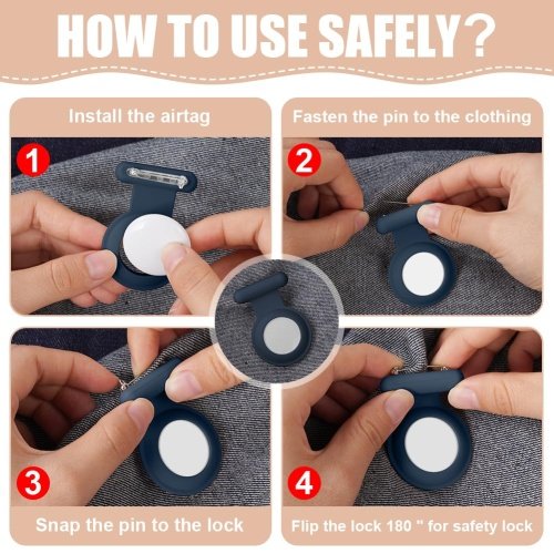 • 【EASY TO USE】You can assemble our silicone holder water proof for apple AirTag case yourself. The lock on the pin should be rotated 180°, then pressed hard to open. The AirTag is securely concealed inside, ensuring stability during installation.