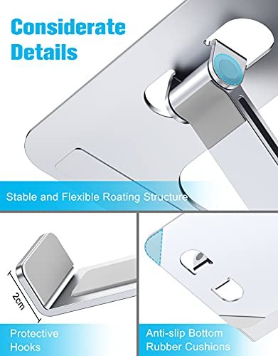 - 【Stable & Sturdy】The laptop stand for desk is made of high-quality aluminum alloy. It can support up to 8.8 lbs (4 kg) without shaking the panel. The panel and its two hooks are designed with non-slip straps to make the laptop holder more stable, and 4 non-slip silicone pads at the bottom help prevent the computer riser from sliding. These considerate designs are to ensure you better use.