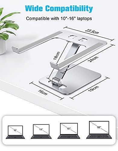 - 【Widely Device-Compatible】The sturdy computer stand fits varieties of laptops from 10″ – 16″. Compatible with MacBook, MacBook Pro, MacBook Air, Asus, Toshiba, Lenovo, Chromebook and more notebooks, all iPads and tablets.