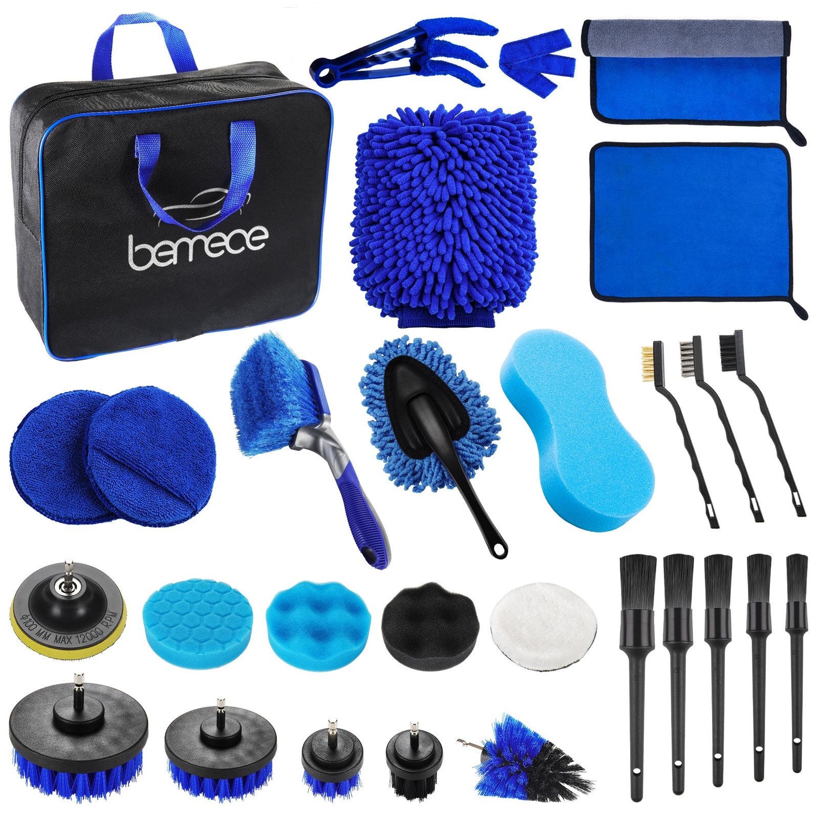 Bemece 29 Piece car detailing kit, car cleaning kit for Cleaning Wheels, Interior, Exterior, Leather, Dashboard, Vents (Blue)…