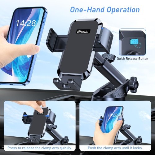 - 【Convenient One-handed Operation】Featured a one-button release system that enables you to release your phone with just one hand. Simply press the clamping arms on both sides to lock the device. No complicated operations, bringing you a safer and better driving experience.