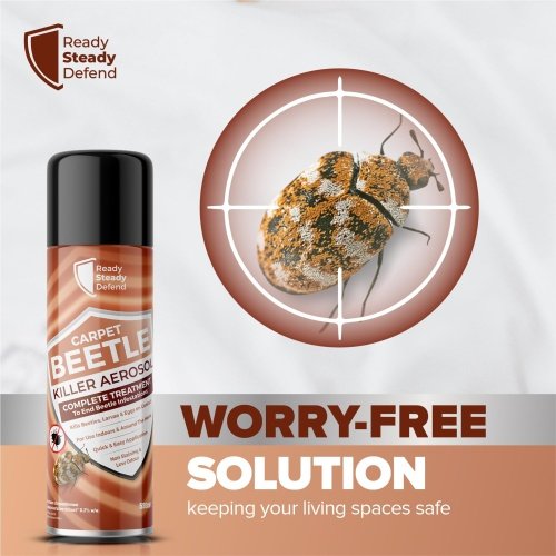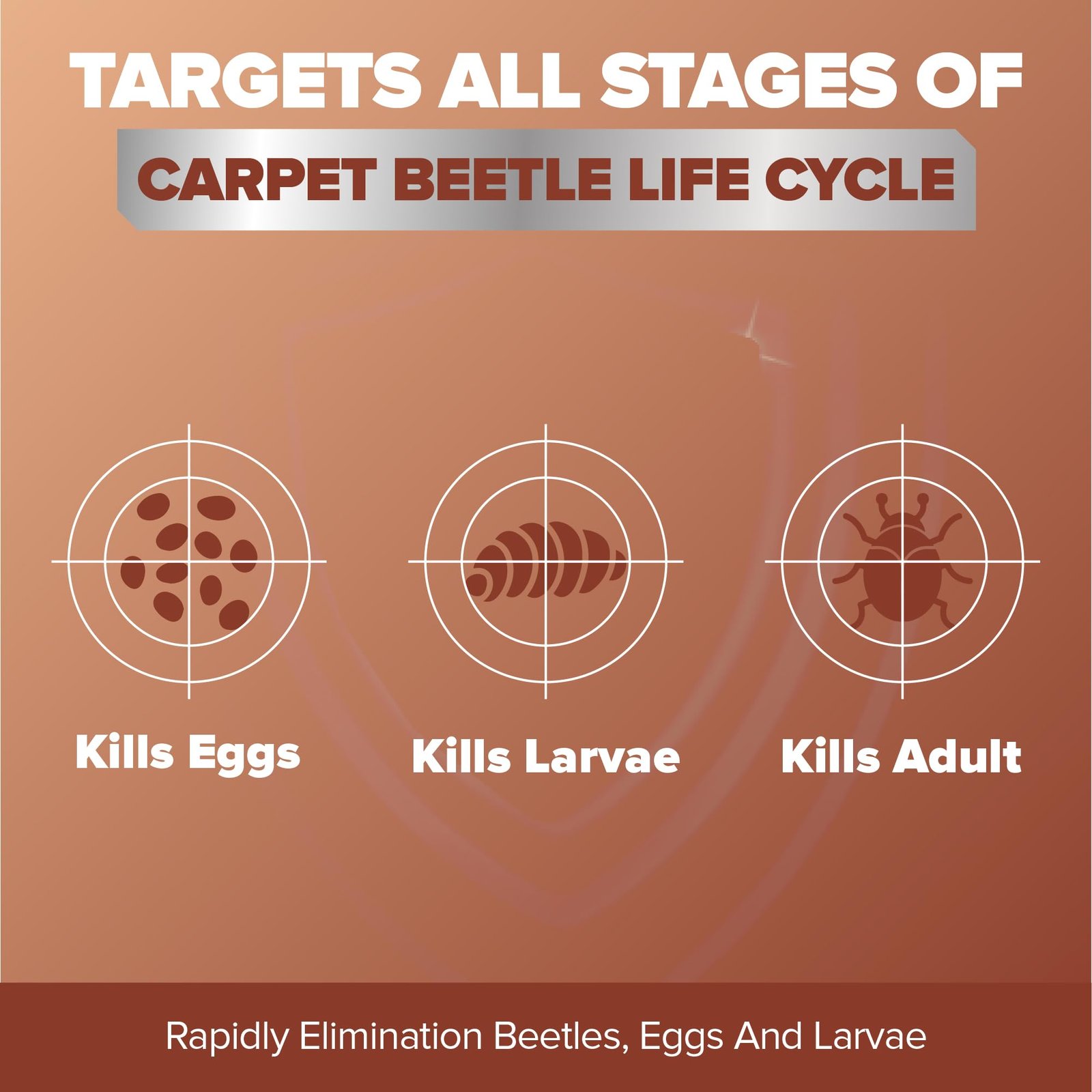 - Precision Beetle Control: Specially formulated to eliminate carpet beetles, eggs, and larvae on contact, ensuring your carpets, rugs, and furniture are protected. This powerful aerosol deeply penetrates fabrics to target hidden beetles, providing a comprehensive solution.