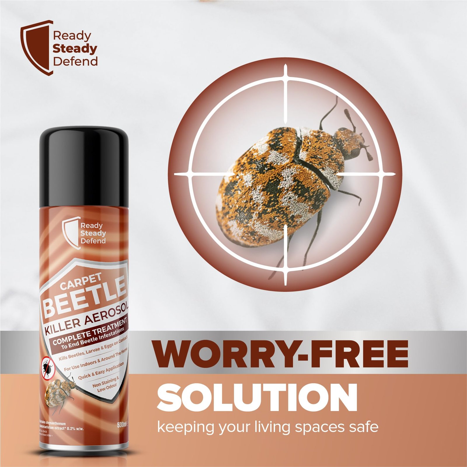 Carpet Beetle Killer Aerosol – 530ml, Effective for Carpets, Rugs & Furniture, Eliminates Beetles, Eggs, and Larvae, Non-Staining & Low Odour, Quick & Easy Application, Ideal for Home Use