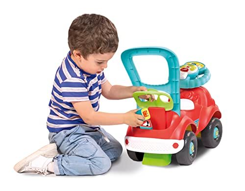 - LEARN PLAYING: Stimulates curiosity and hearing with sound effects, while the ergonomic structure supports motor skills and coordination; with the interactive steering wheel and sweet songs and nursery rhymes, children will discover numbers, words and directions