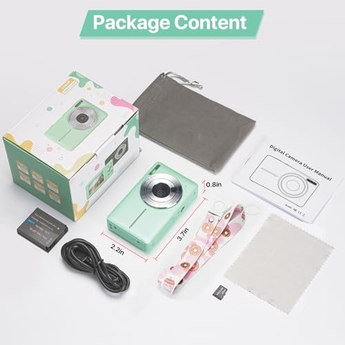 • 【Perfect Gifts and Thoughtful Service】1x digital camera, 1x 32G micro memory card, 1x batteries, 1x USB-C cable, 1x wrist strap, 1x storage bag. It is the perfect gf for boys and girls and the first real camera for kids who love taking videos and photos. We provide up to 1 year after-sales warranty service, please consult us for any malfunction and defect of the purchased camera.