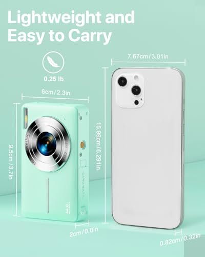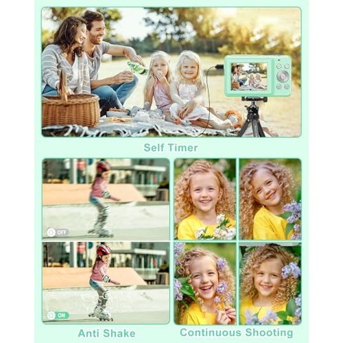 • 【Kids Digital Camera, Easy to Use】From the easy-to-use buttons to the simple function menu and from the LED flash to the 2.4-inch LCD display, this camera is easy to use for children aged 8-13. The included USB-C cable can not only be used for charging, but also supports the transfer of photos and videos from the compact digital camera’s memory card to a computer for timely photo collection and storage.
