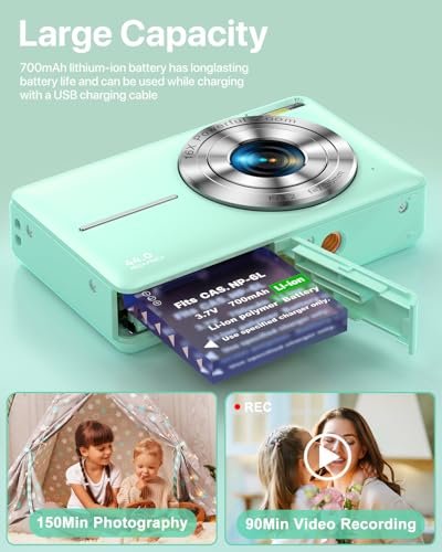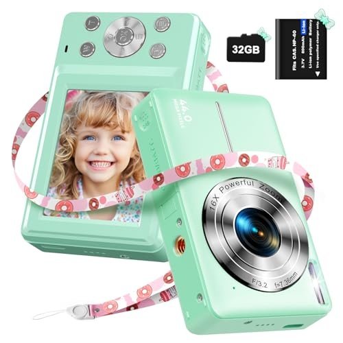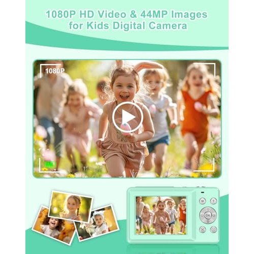 • 【1080P Digital Camera with Sd Card】With a video resolution of 1080p and a whopping 44 megapixels, this digital camera delivers sharper images than any other camera. It also has a 700 mAh rechargeable battery and a 32 GB micro SD card, so there’s no need to buy a separate memory card so the kids can capture every moment on the go.