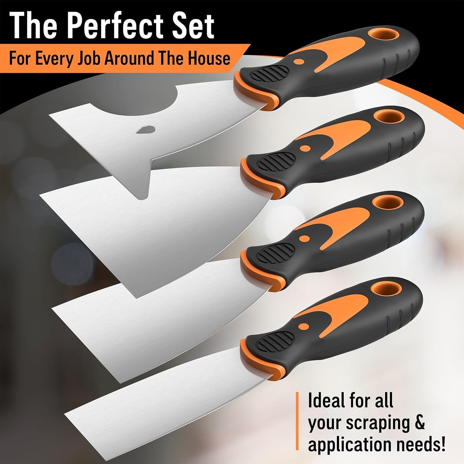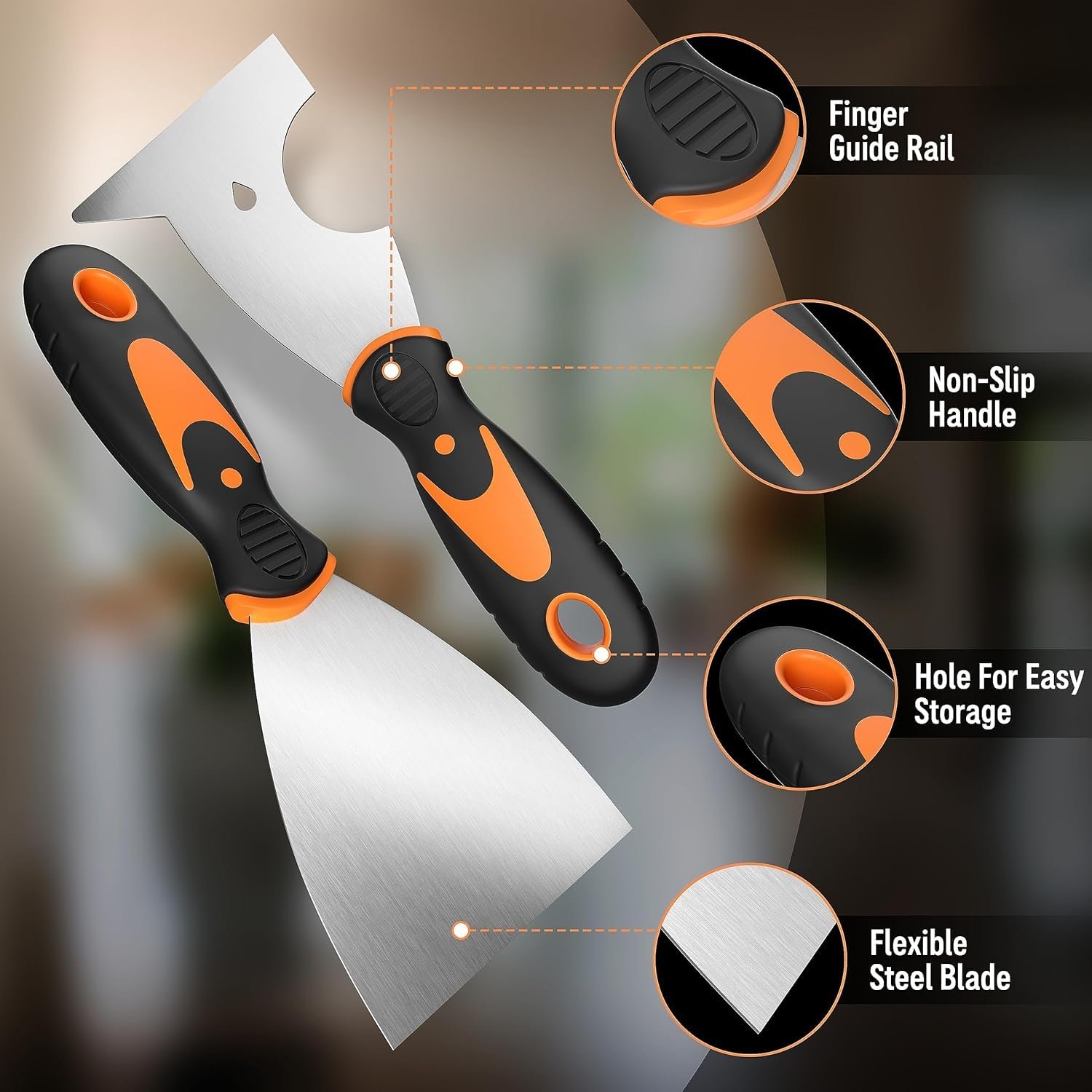 - MULTIFUNCTIONAL SCRAPER TOOL FOR VERSATILE APPLICATIONS: This set includes tools perfect for a variety of tasks—use as a wallpaper stripper, a paint scraper for metal, or even a putty knife. Our tools are versatile, making them a great addition to any DIY enthusiast’s toolbox.