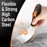 - HIGH-QUALITY FLEXIBLE STEEL BLADES FOR TOUGH JOBS: Crafted from durable high carbon steel, our wallpaper scraper and paint scraper tools are designed for flexibility and strength. These tools make filling and scraping easy, ensuring smooth results whether you’re removing wallpaper or applying filler.