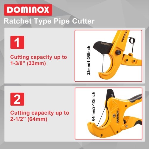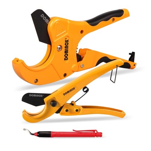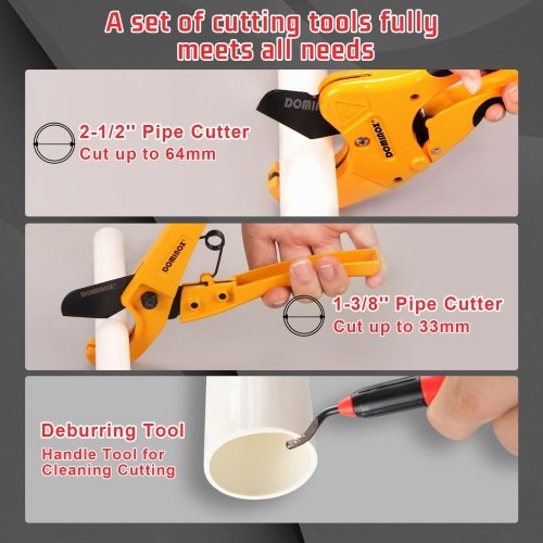 DOMINOX Pipe Cutter, 64mm (2 1/2” O.D.) +26mm+Deburring Tool (3 Set), Professional Cutting PEX, PVC and PPR Pipe, SK5 Blade and Aluminum Alloy Body, One-Hand Rapid Cutting Tool for The Pipe