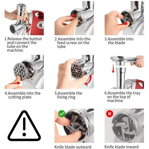 - ✔️【Easy to Operation】-Meat grinder electric for home use has 1 speeds and reverse function. You can adjust the speed of grinding and avoid the meat jam. The accessories of this meat mincer are very simple to assemble, and the accessories would firmly be seated and no loose.