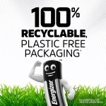 • 100 percent Recyclable Packaging – Energizer packaging is 100 percent recyclable, supports responsible forestry and is plastic-free, excluding seals on selected larger packs. Packaging May Vary