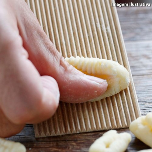 Details: Small board with groove detail and a practical handle is made from natural beech wood. Ideal for making gnocchi and even garganelli with grooves with the help of the small rolling pin.