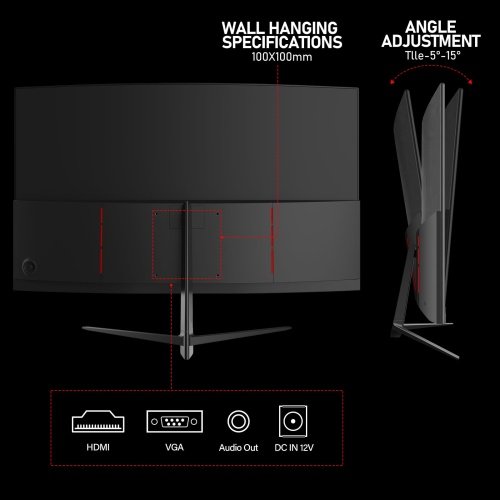 - Versatile Compatibility – The curved monitor is equipped with HDMI and VGA connections, making it compatible with most laptops and PCs. Ideal for gaming consoles or home office use.