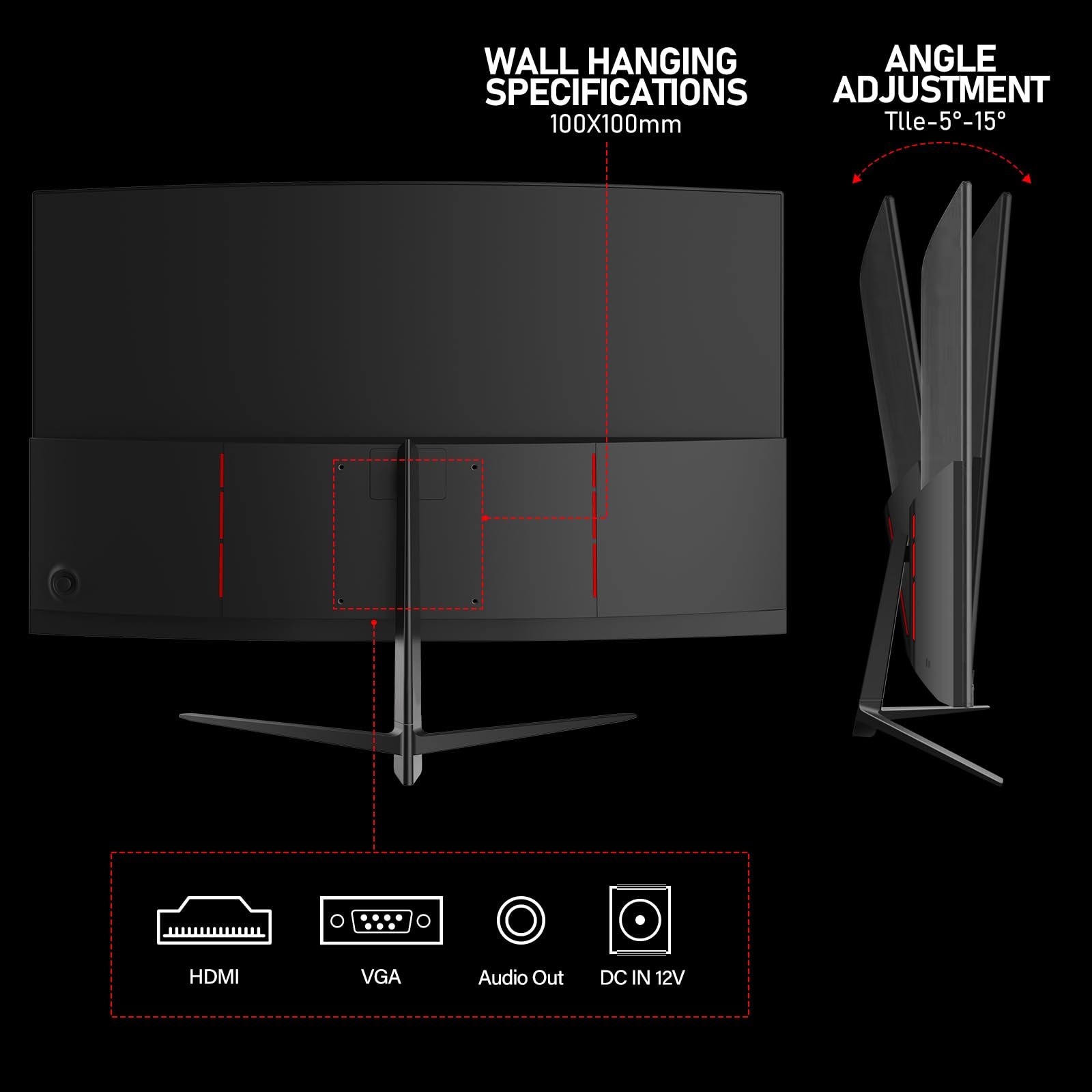- Adjustable Tilt – The monitor can be tilted up to 15 degrees backwards and 5 degrees forwards and supports a 100*100mm monitor VESA mount (bracket not included), providing multiple ways to find the optimal viewing angle of the screen.