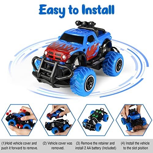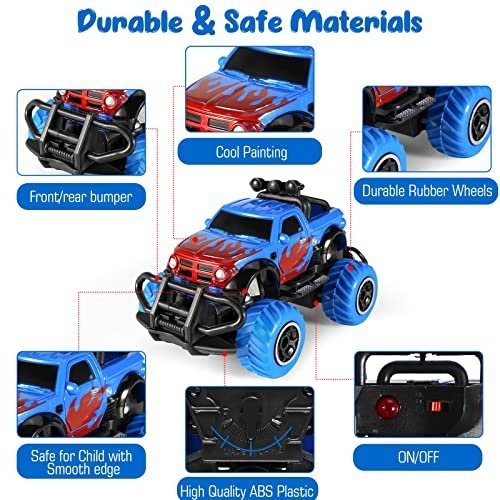 - Racing Car Toys for Toddlers: The mini remote control monster trucks for boys with 4 shock resistant rubber tires make driving smoother like hallway, living room, garden, park and playground .