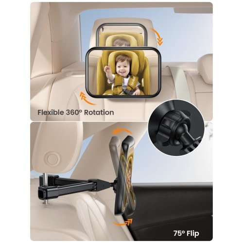 - 【360° Flexible Rotation】This baby mirror for car seat rear facing features a universal ball design, supporting 360° flexible rotation and 45° tilting up and down. You can adjust the mirror to the optimal viewing angle for your baby based on personal preference and actual needs. Suitable for parents and babies of all heights.