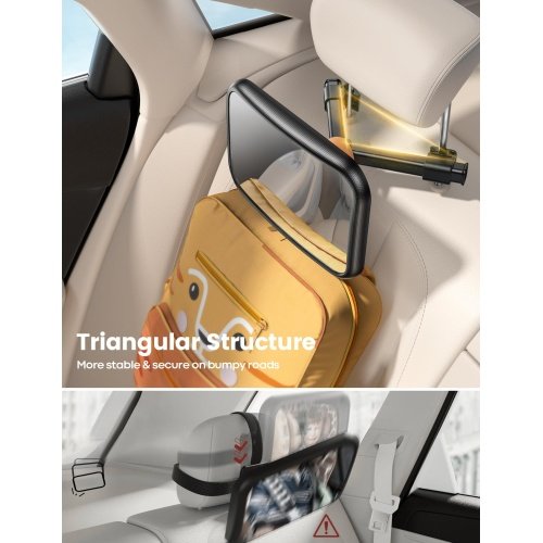 - 【Ultra Stable Triangle Hook Clip】The Lamicall 2024 newest baby mirror for car feature an ultra-stable triangle hook clip design. Unlike traditional strap-on designs, this hook clip makes the mirror easier to install and more stable. Even on bumpy roads, the baby car mirror for rear facing remain steady, keeping your baby in view at all times without worrying about wobbling or falling off.