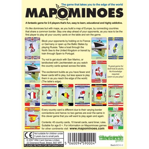 - It’s like dominoes but with maps, as you build a map of Europe, by connecting countries that share a common border. First to play all their countries wins.