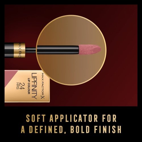 Max Factor Lipfinity Lip Colour is the original longwear lip product reimagined in a 2-step formula for lastingly luscious lips. Make a statement with a vivid lip colour that stays put for up to 24 hours. Formula The lip gloss and lipstick balm offer multi-dimensional colour and shine that last up to 24 hours. Now with a new applicator wand for precise, rich colour that stays in place all day.