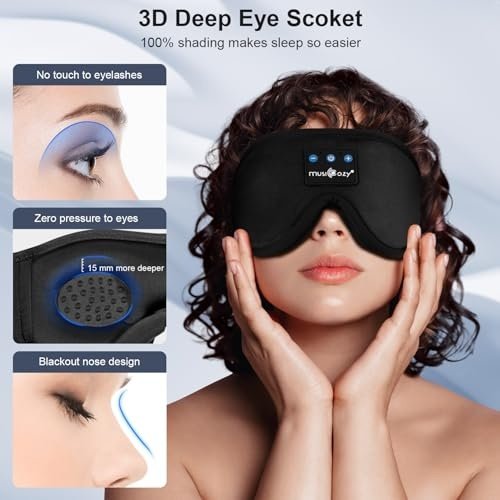 MUSICOZY Bluetooth Sleep Mask,Upgraded 3D Sleep Headphones Eye Mask with Headphones for Men & Women,Wireless Music Sleep Mask Sleeping Headphones for Travel/Nap/Yoga/Meditation/Night (Black)