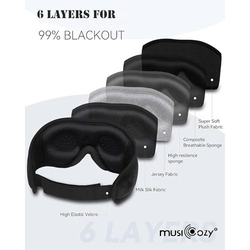 - 🕶️🏅【Best 3D Sleep Headphones with HD Stereo Sound】 Musicozy Sleep mask headphones bluetooth featuring the newest stable 5.4 technology,stable connectivity and smooth transmission in high speed and long distance with low consumption for great stereo sound experience.Musicozy sleep mask with headphones can pair with any Bluetooth-enabled smartphone or tablet devices just in seconds,You can listen to soft music without the use of painful and falling sleep earplugs, so that you fall asleep faster.