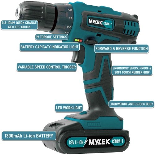 - ADDED EXTRAS & 2-YEAR WARRANTY: The Mylek Cordless Drill Includes a 13-piece kit. Fully CE certified / EU Batteries Directive Compliant / UN38.3 and RoHS compliant to the highest UK standards and supplied with a 2-year warranty