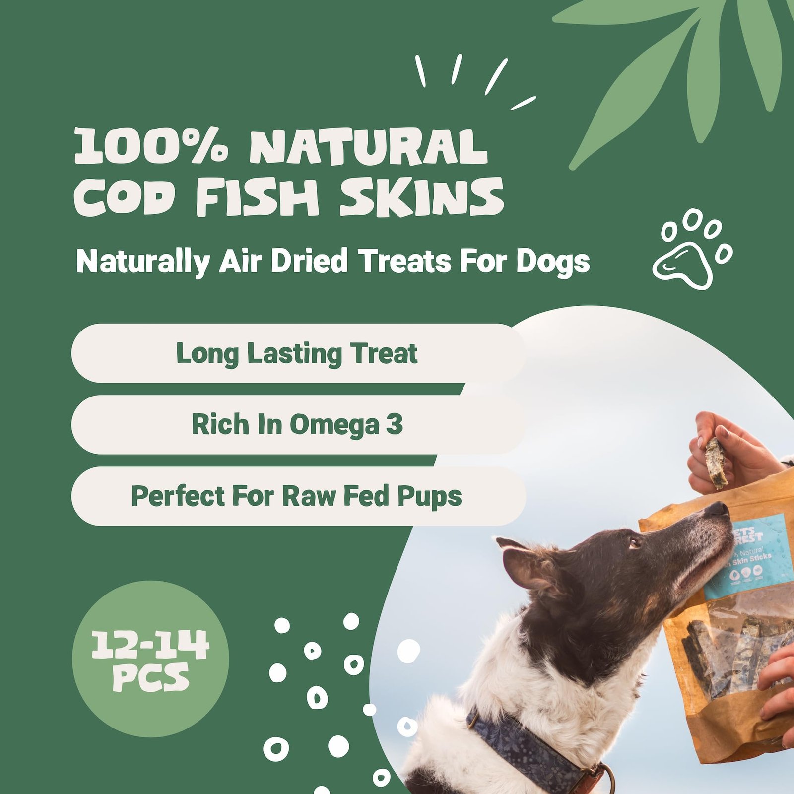 - Healthy Fish Dog Treats: Pets Purest Cod Skin Sticks are delicious and nutritious dog chews, easily keeping your pet occupied and satisfied with this salubrious snack. Our dried fish treats for dogs offer an Omega rich alternative to jerky and a safer treat than old-fashioned rawhide dog chews.