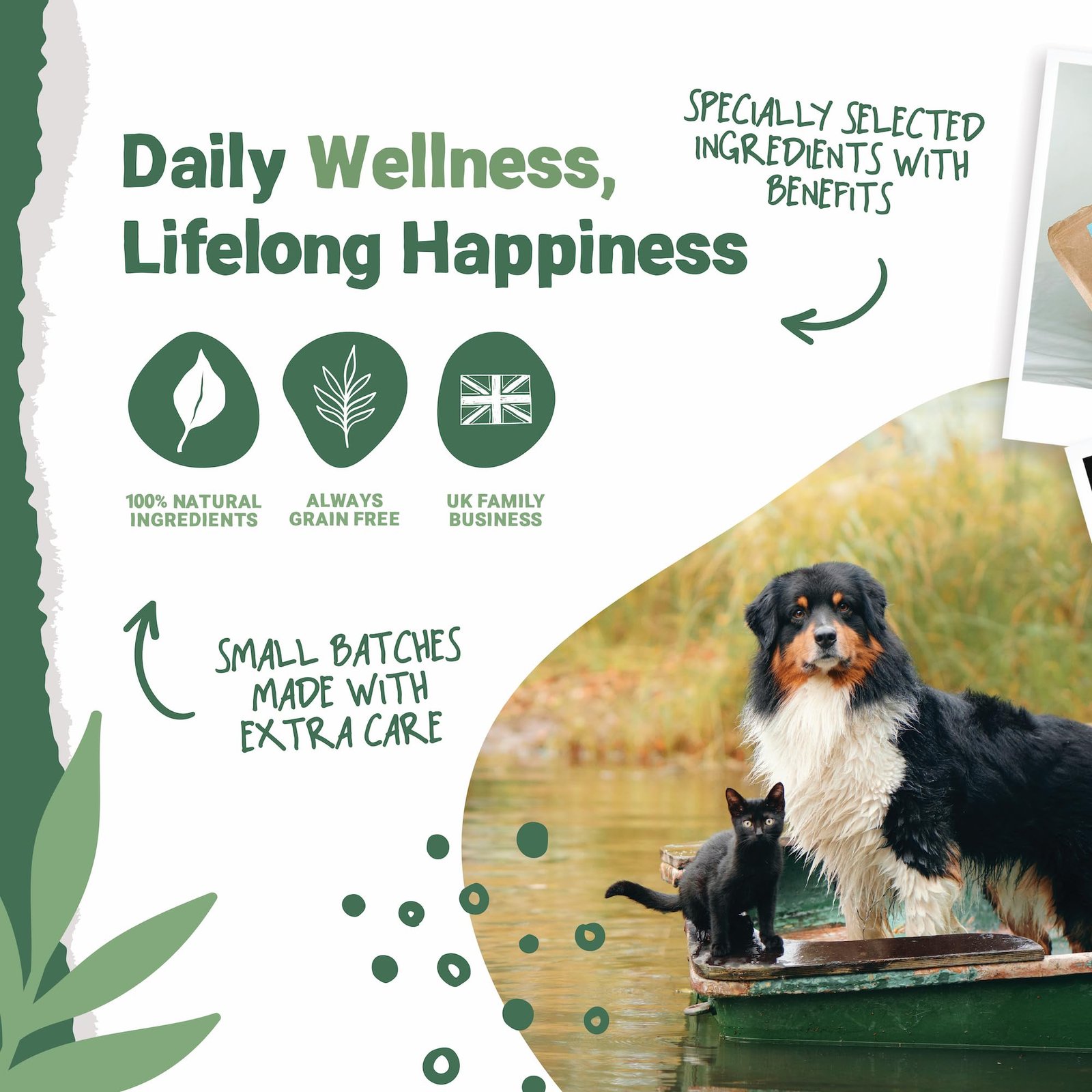 Dental Care, Skin and Coat Health, Hip and Joint Support, Brain Health