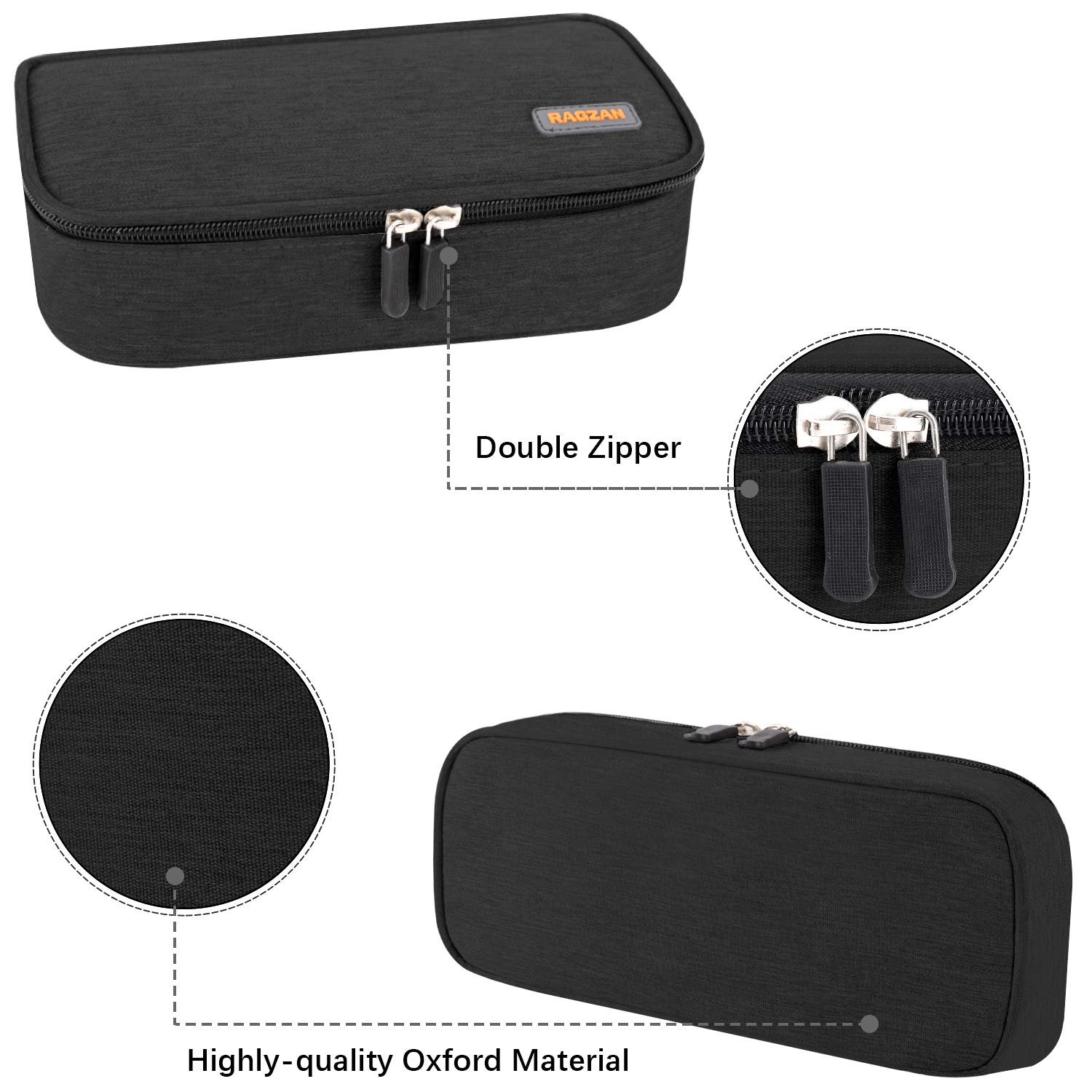 RAGZAN Pencil Case, Large Capacity Pen Case Bag Pouch Holder Stationery Desk Organizer with Zipper for School & Office Supplies(Black)