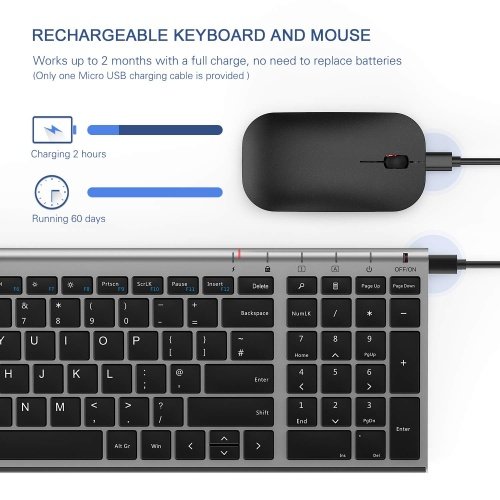 - Long-lasting Rechargeable Battery: Enjoy up to 2 months of daily use with a single charge for both the keyboard and mouse. For extended battery life, simply power off switches when not in use.