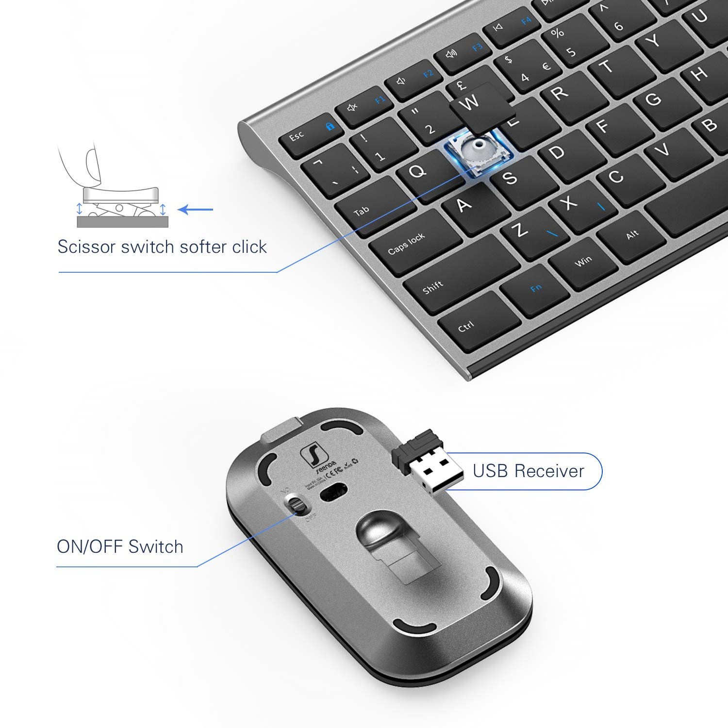 - Ultra-Thin & Low Profile: The seenda WGJP-031B keyboard and mouse feature a sleek design, 1/3 smaller than traditional keyboards for a modern and compact setup.