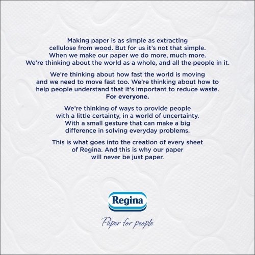 Regina Soft Bamboo is so naturally soft on your skin, thanks to its incredibly fluffy paper: third-party lab tests confirm it is our softest toilet tissue ever manufactured. Produced with 10% of natural bamboo fibers, Regina Soft Bamboo guarantees 3-ply of pure gentleness everyday: it is dermatologically tested and safe to use even on most sensitive skin. Packed with recyclable paper, manufactured with 100% of electric energy coming from renewable resources. The FSC certification guarantees Regina Soft Bamboo is produced from certified raw materials obtained from responsibly managed forests and controlled sources. Each pack contains 45 rolls of toilet tissue, each with 160 sheets.