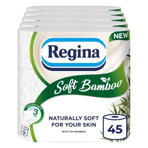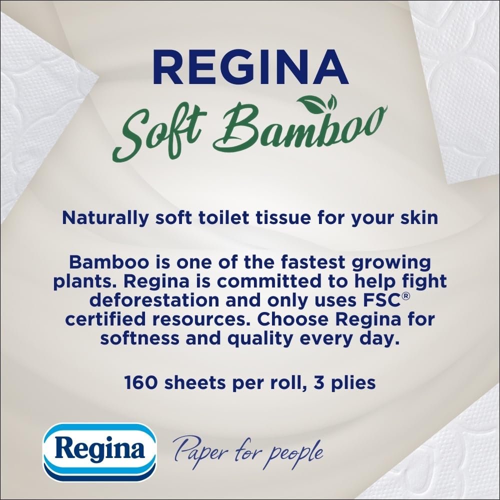 Regina Soft Bamboo – 45 Rolls of Toilet Tissue 3 Ply, 160 Sheets, Naturally Soft for Your Skin, Toilet Tissue Made with Bamboo Fibers, Paper Packaging, FSC Certificated