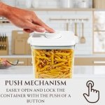 - Airtight Lid – The easy to use push locking mechanism ensures a 100% airtight seal. Enjoy maximum freshness and increased shelf life at the push of a button