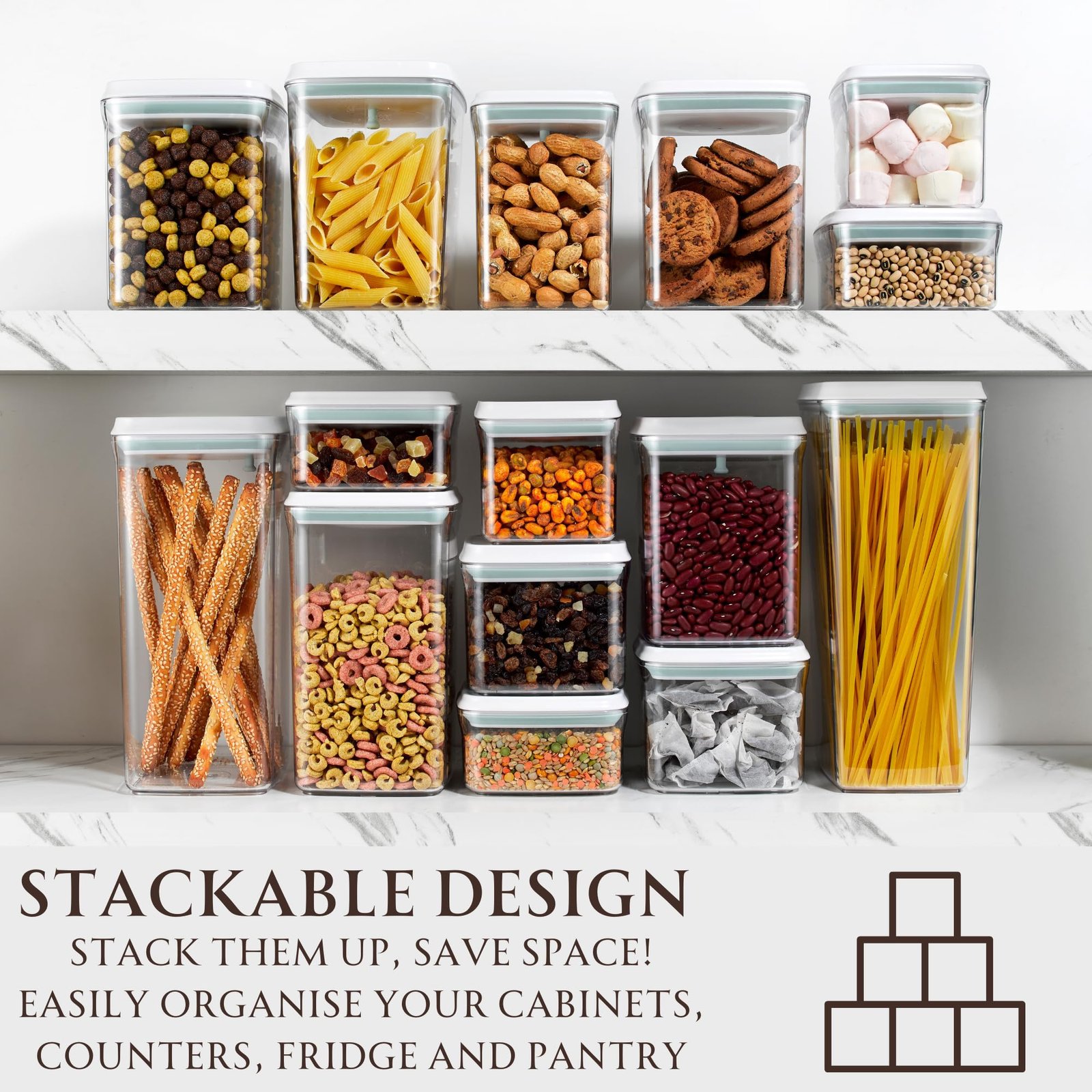 - Stackable Design – Maximise your storage space with our stackable containers. Say goodbye to clutter and hello to an organised pantry or fridge.