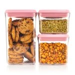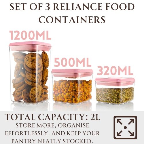 RELIANCE KITCHEN Set of 3 Airtight Food Storage Containers – Kitchen Storage & Organisation – BPA Free Clear Plastic – Dishwasher & Microwave Safe – Leak-Proof – One-Click Push Mechanism
