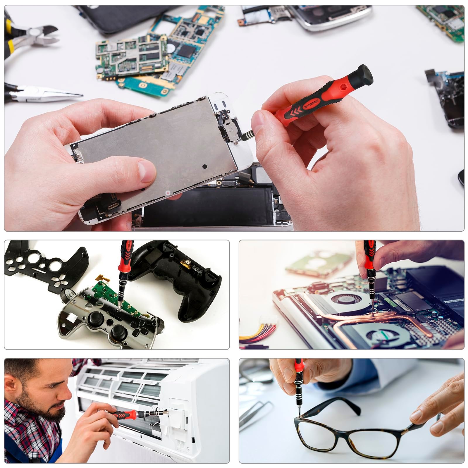 - Multi Function: SHARDEN professional micro screwdrivers set includes 101 pieces 4mm bits(Torx, Phillips, Triangle, Pentalobe, Triwing, etc), complete with every driver head you’ll need to fix any electronics, like Apple & Android mobile phone, PC, laptop, Mac, PlayStation 5/4/3, game console & controller, iPad, RC toys, watch, glasses, jewellers and more