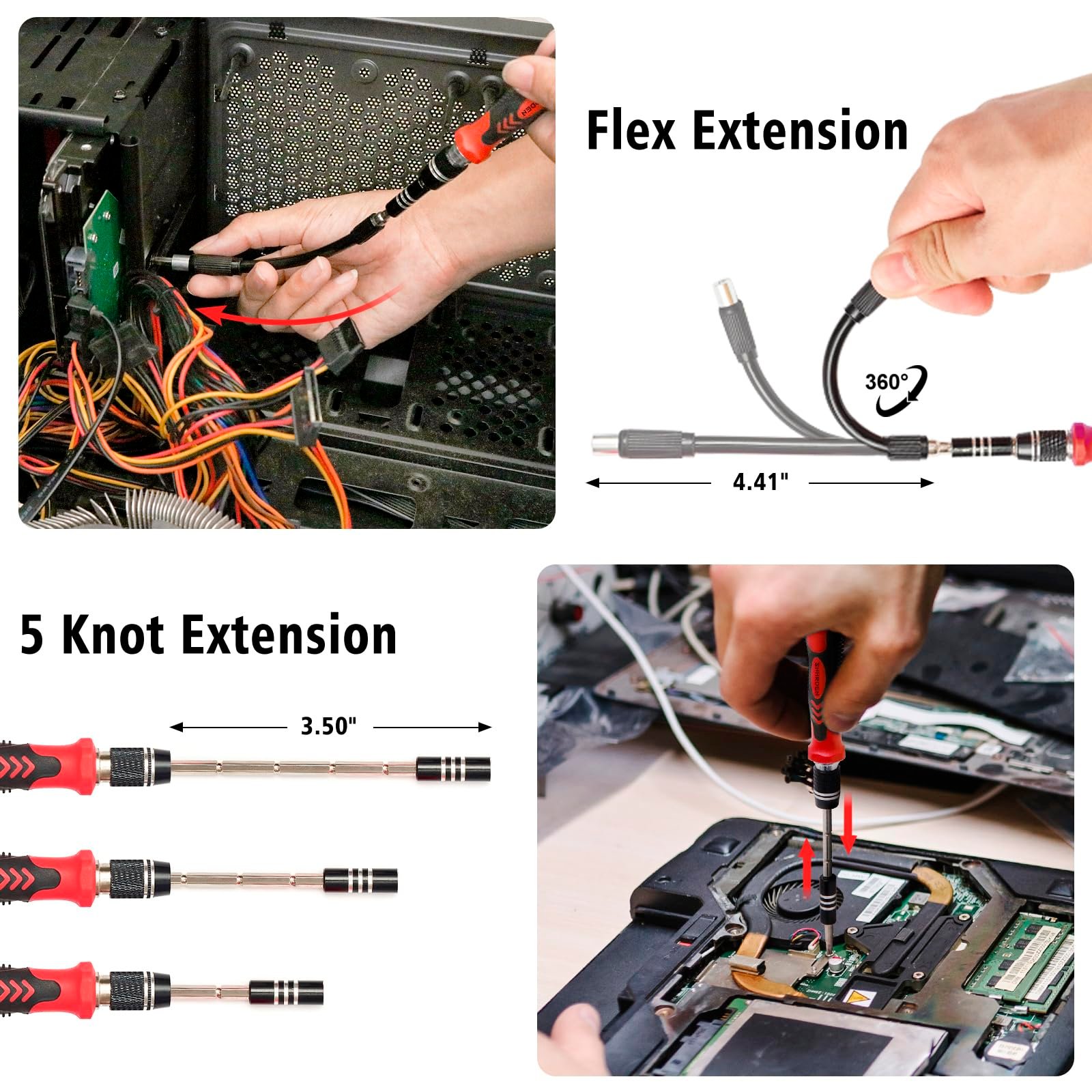 - Premium Quality: Our pc screwdriver set is manufactured from quality material for the best user experience. The screwdriver bits are made of chrome vanadium steel which can resist abrasion, oxidation and corrosion, make the tips sturdy, durable and not easily stripped. The screwdriver handle is made of PP & TPR material to anti slip, deliver comfortable control and maximum torque