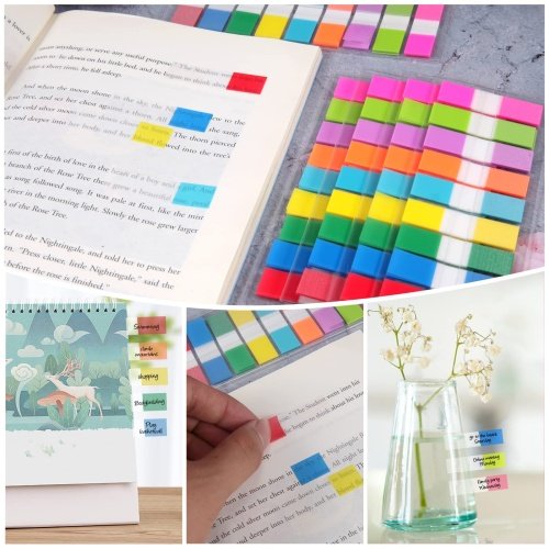 • 📖【Transparent design】:-With sticky tabs you can easily identify the text at the bottom and no longer have to worry about sticky notes covering up important content. You can also easily remove sticky notes and place them elsewhere without leaving an ugly mark.