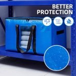 - Durable and Heavy Duty: The clothes storage bags uses a 3-layer stitching technique to handle the zip, long carry handle and side straps, giving the main body of the bag plenty of carrying capacity and tear resistance. The U-shaped handle design wraps the blue heavy duty storage bag from the bottom to the side, increasing the bottom load capacity and allowing for easy storage of up to 100 lbs