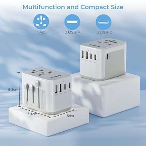 - Compact for Traveling: With size of 5 x 5.3 x 7.1 cm and weight of 149 g, TESSAN universal adapter plug travel can save a lot of space in your luggage without having to take many travel adapters on your trip