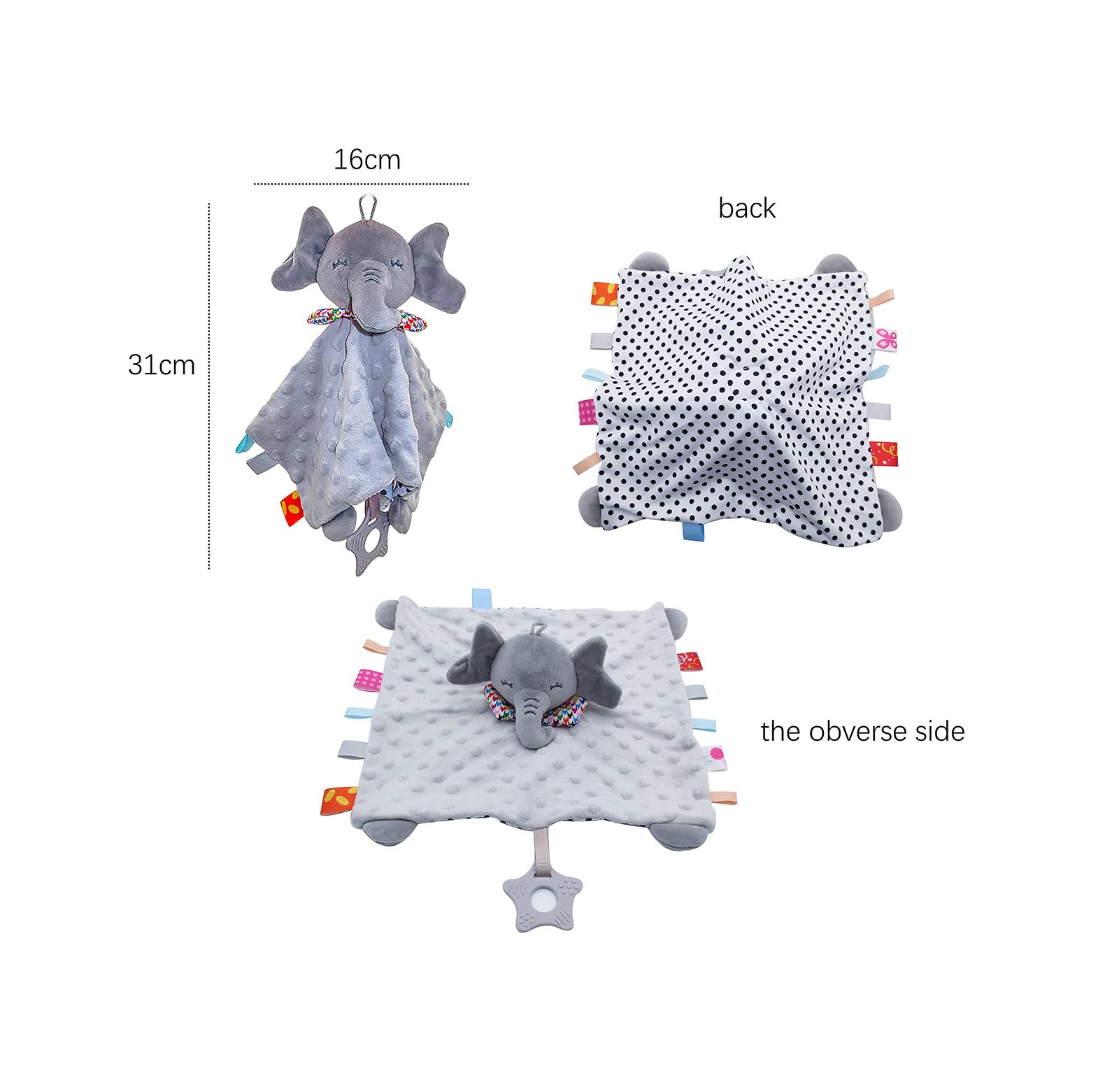 - Made for small, curious hands: Size 28 x 28cm baby blanket comforter which is ideal for baby to use while on a stroller, car seat or crib.
