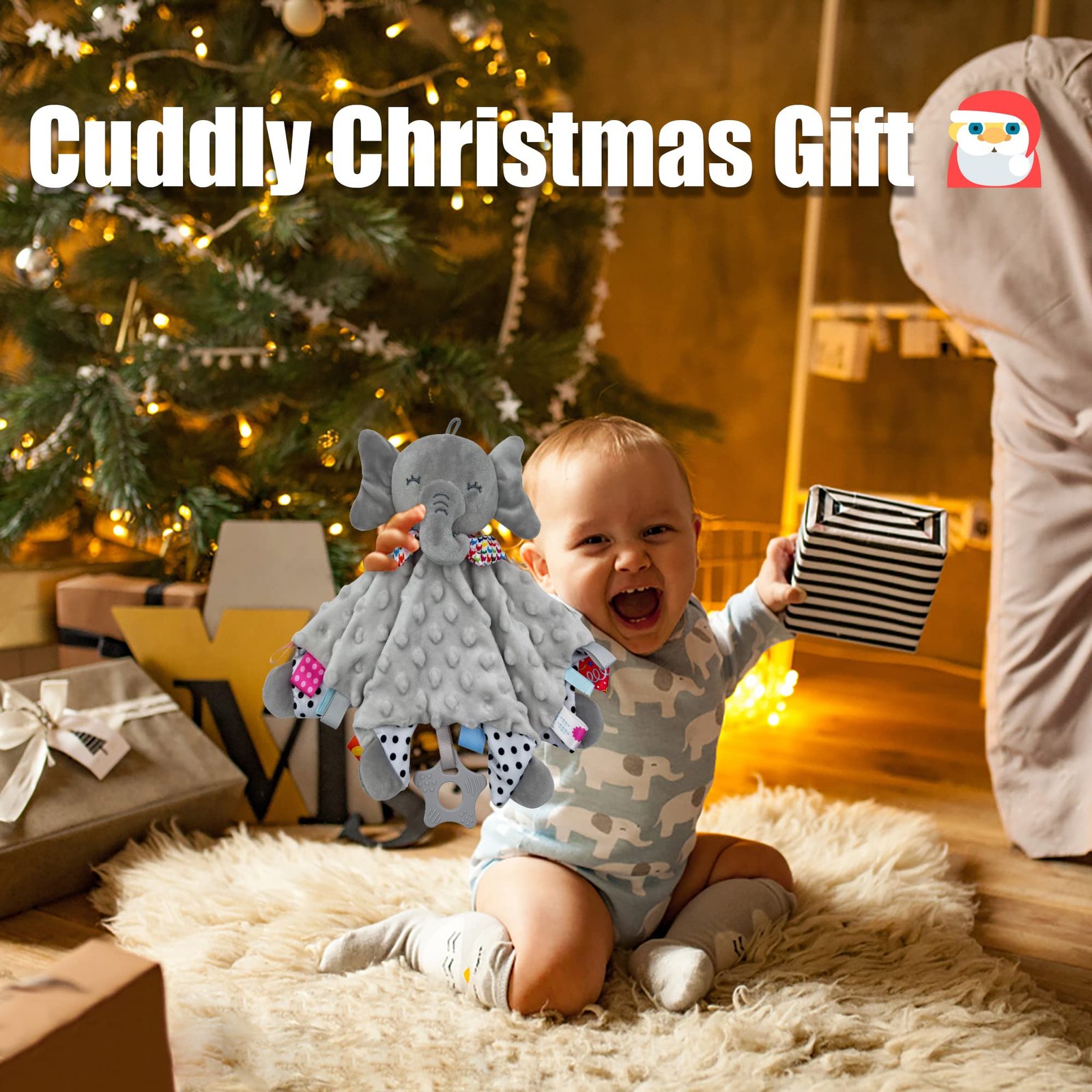 UNMOT Baby comforter Blanket,Cuddle Blanket,Baby Cuddly Toy with Crinkle Foil and Bell,soft comforter for newborn,baby boy & girl gift (Elephant)